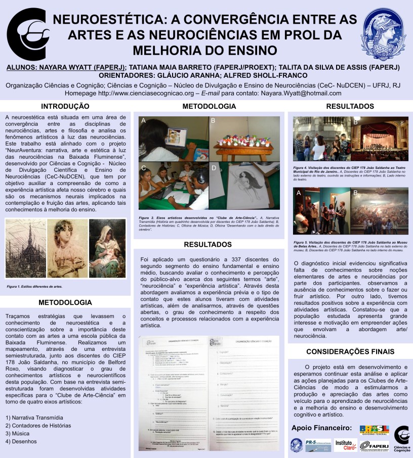 Mostrar como a experiência artística adentra o cérebro e quais os mecanismos neurais implicados na contemplação e aproveitamento das artes, aplicando tais conhecimentos à melhoria do ensino é a meta do trabalho “Neuroestética: a convergência entre as artes e as neurociências em prol da melhoria do ensino”.