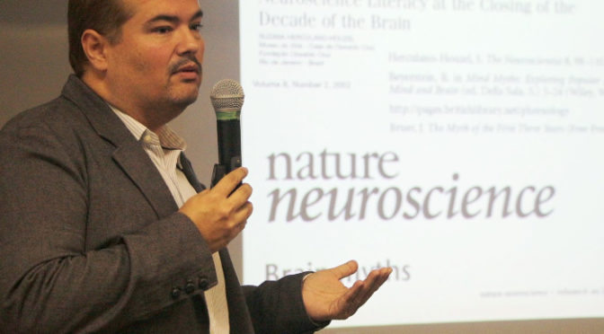 No caso das neurociências, a base comum é o foco no sistema nervoso, e há uma busca das diferentes áreas para demarcarem suas prioridades. Isso não quer dizer que uma área é mais importante do que a outra, mas as visões são sempre direcionadas, dependem do histórico e da formação de quem organiza o grupo de pesquisa. Se em um grupo há dez pedagogos e um biólogo, por exemplo, e no outro há nove biólogos e um pedagogo, os focos serão distintos. Neurociência é um termo abrangente e sujeito a muitos questionamentos. Uma boa maneira de perceber isso é quando uma pessoa se diz neurocientista. É difícil saber exatamente com o que ela trabalha. Eu, por exemplo, coordeno o Núcleo de Estudos em Neurociências e Educação (Neuroeduc). Nele há profissionais e estudantes de fonoaudiologia, educação física, matemática, psicologia, biomedicina. A premissa é um trabalho multidisciplinar e transdisciplinar, que também caracteriza vários outros grupos da área no Brasil, como o Neuroeduca, na Universidade Federal do Rio Grande do Sul, e o Instituto do Cérebro, no Rio Grande do Norte.