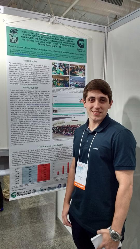 Introdução: As neurociências têm muito a contribuir para a sociedade na construção dos conhecimentos em nosso dia-a-dia. Neste sentido, o Museu Itinerante de Neurociências (MIN) foi criado em 2009 por Ciências e Cognição – Núcleo de Divulgação Científica e Ensino de Neurociências (CeC–NuDCEN), um projeto de extensão do Instituto de Biofísica Carlos Chagas Filho (IBCCF) da UFRJ, em colaboração com a Organização Ciências e Cognição (OCC). Desde 2010 este projeto tem desenvolvido várias atividades relacionadas à divulgação e ensino de neurociências.