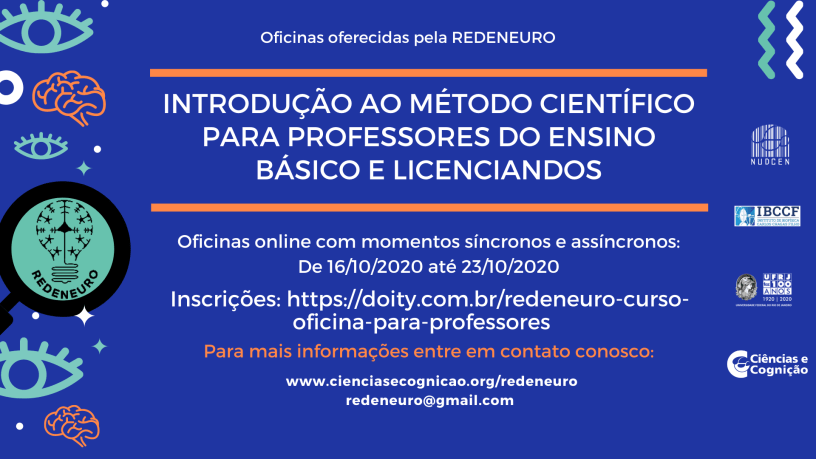 Inscrição (gratuita): https://doity.com.br/redeneuro-curso-oficina-para-professores