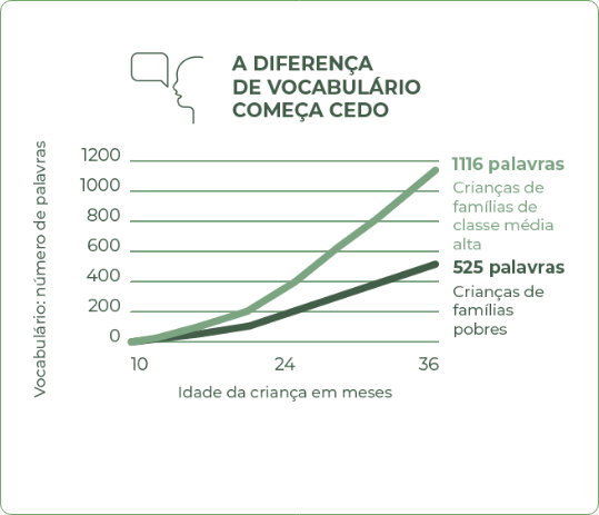 Já foi observado (Figura 1) que crianças de famílias pertencentes a estratos sócioeconômicos mais baixos e que, por via de consequência, tem acesso mais restrito a bens de consumo, tendem a ter um repertório acumulado de palavras menor do que crianças provenientes de famílias de classe média alta, sendo possível inferir que as realidades sociais influenciam a construção do repertório linguístico. Possivelmente, as famílias mais carentes, por necessidades de ausência do lar por conta de trabalho e deslocamento, acabam não tendo condições de promover um ambiente de literacia familiar, ou seja, um ambiente em que os pais podem direta ou indiretamente viabilizar para a criança contextos de leitura, diálogo, programação audiovisual orientada, etc.