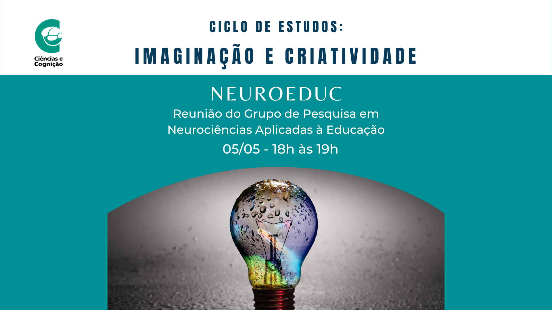 No dia 05/05, de 18:00 às 19:00, será realizada a terceira reunião do Ciclo de Estudos ‘Imaginação e Criatividade’, do grupo de pesquisa Neuroeduc – Neurociências Aplicadas à Educação, de Ciências e Cognição, que congrega pesquisadores de diferentes instituições. Na reunião do dia 05/05, serão discutidos os capítulos ‘O mecanismo da imaginação criativa’ e ‘A imaginação da criança e do adolescente’ da obra: Vigotski, L. S. (2014). Imaginação e criatividade na infância. São Paulo: WMF Martins Fontes. A participação como ouvinte na reunião do grupo de pesquisa é permitida, mas não há emissão de certificado ou congênere. A plataforma usada é a Jitsi, não havendo necessidade de baixar qualquer programa (salvo para quem for assistir pelo celular, neste caso deve-se acessar o link com antecedência para baixar o aplicativo).