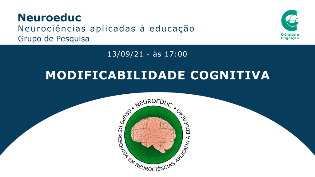 Em virtude do feriado de 07/09, a reunião mensal do grupo de pesquisa Neuroeduc – Neurociências Aplicadas à Educação, de Ciências e Cognição, foi transferida para o dia 13/09, às 17:00. Neste encontro, será realizado o quarto encontro do Ciclo de Estudos ‘Modificabilidade Cognitiva’, dando-se continuidade ao estudo da obra “Além da inteligência: aprendizagem mediada e a capacidade de mudança do cérebro“, de Reuven Feuerstein, Refael feuerstein e Louis Falik. Serão discutidos os capítulos:
