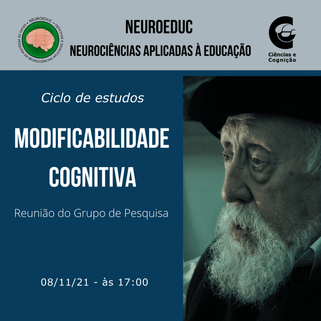 No dia 08/11, às 17:00, ocorrerá o sexto e último encontro do ciclo de estudos Modificabilidade Cognitiva, do grupo de pesquisa Neuroeduc – Neurociências Aplicadas à Educação, de Ciências e Cognição. Neste encontro, será continuada a discussão sobre as teorias de Reuven Feuerstein, na obra “Além da inteligência: aprendizagem mediada e a capacidade de mudança do cérebro“. Conforme decisão, na última reunião, serão continuados os debates em torno dos capítulos 12, 13 e 14 da referida obra: